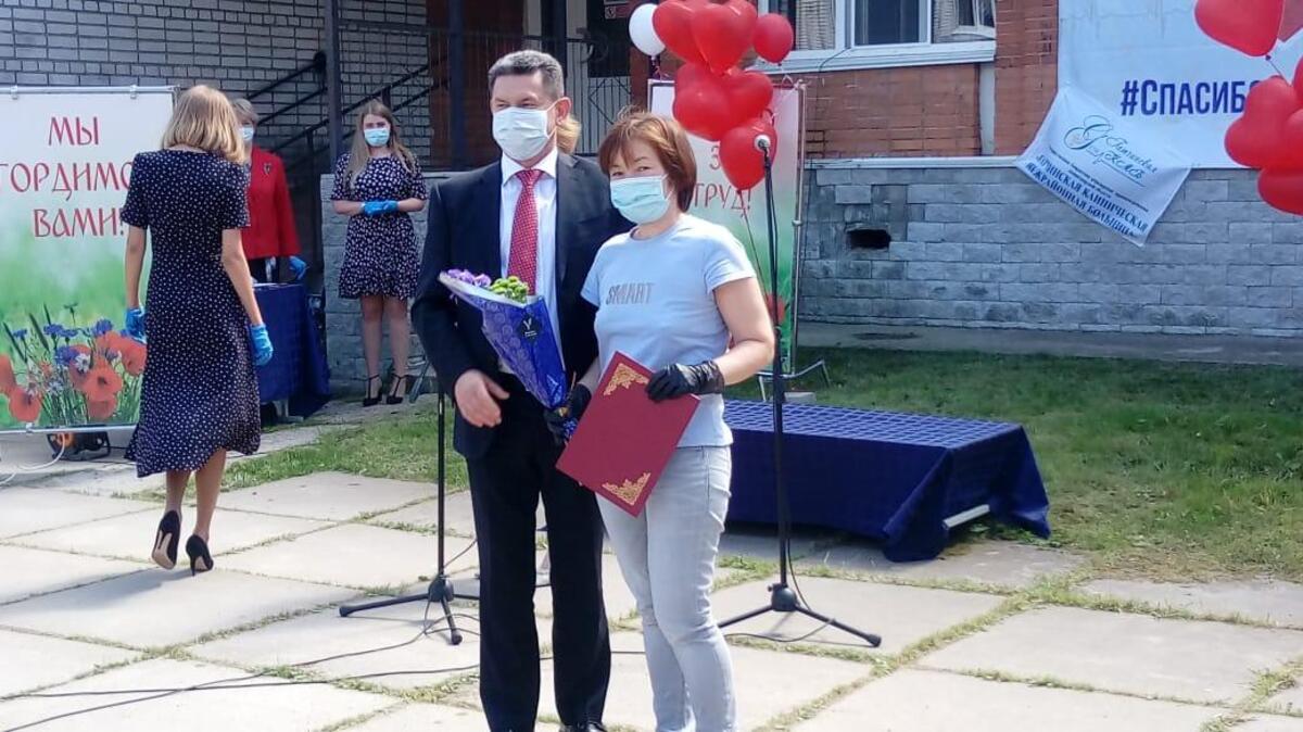 Почетными грамотами и благодарностями Комитета по здравоохранению Ленинградской области были отмечены старшая медицинская сестра поликлиники Сиверской районной больницы Александра Геннадьевна Кузнецова, санитарка отделения паллиативной медицинской помощи стационара Сиверской районной больницы Людмила Андреевна Фоминова.