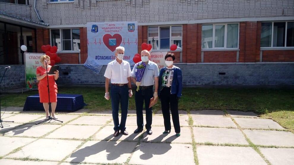 Благодарности и почетные грамоты от руководства Гатчинского района получили врач-хирург приемного отделения стационара Сиверской районной больницы Вера Васильевна Базуева, старший фельдшер Вырицкой подстанции Гатчинской станции скорой медицинской помощи Борис Владимирович Журомский и участковый врач-терапевт Рождественской врачебной амбулатории Ольга Анатольевна Гусева.