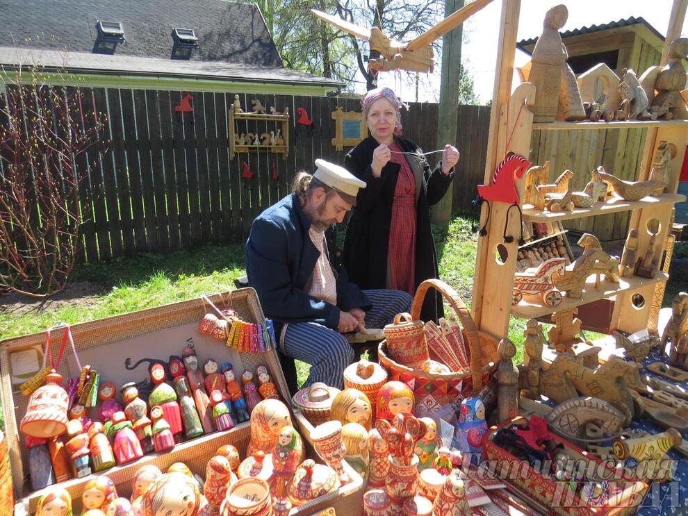 Традиционные игрушки из дерева и бересты представила команда мастерской «Берестяной шаркунок» из Санкт-Петербурга. Оригинальные сувениры и игрушки привезли мастерская «ПеньЁлы» из Прибытково, семейная мастерская Андрея Полежаева, семейная мастерская Евгения Кошкаровского из Дружноселья, фольклорная студия «Лучинушка». Изысканные сувениры и посуду из стекла предлагали на ярмарке мастера-стеклодувы из Дружной Горки.