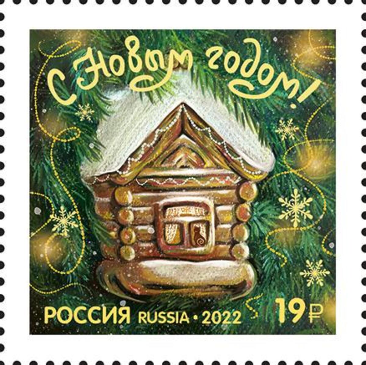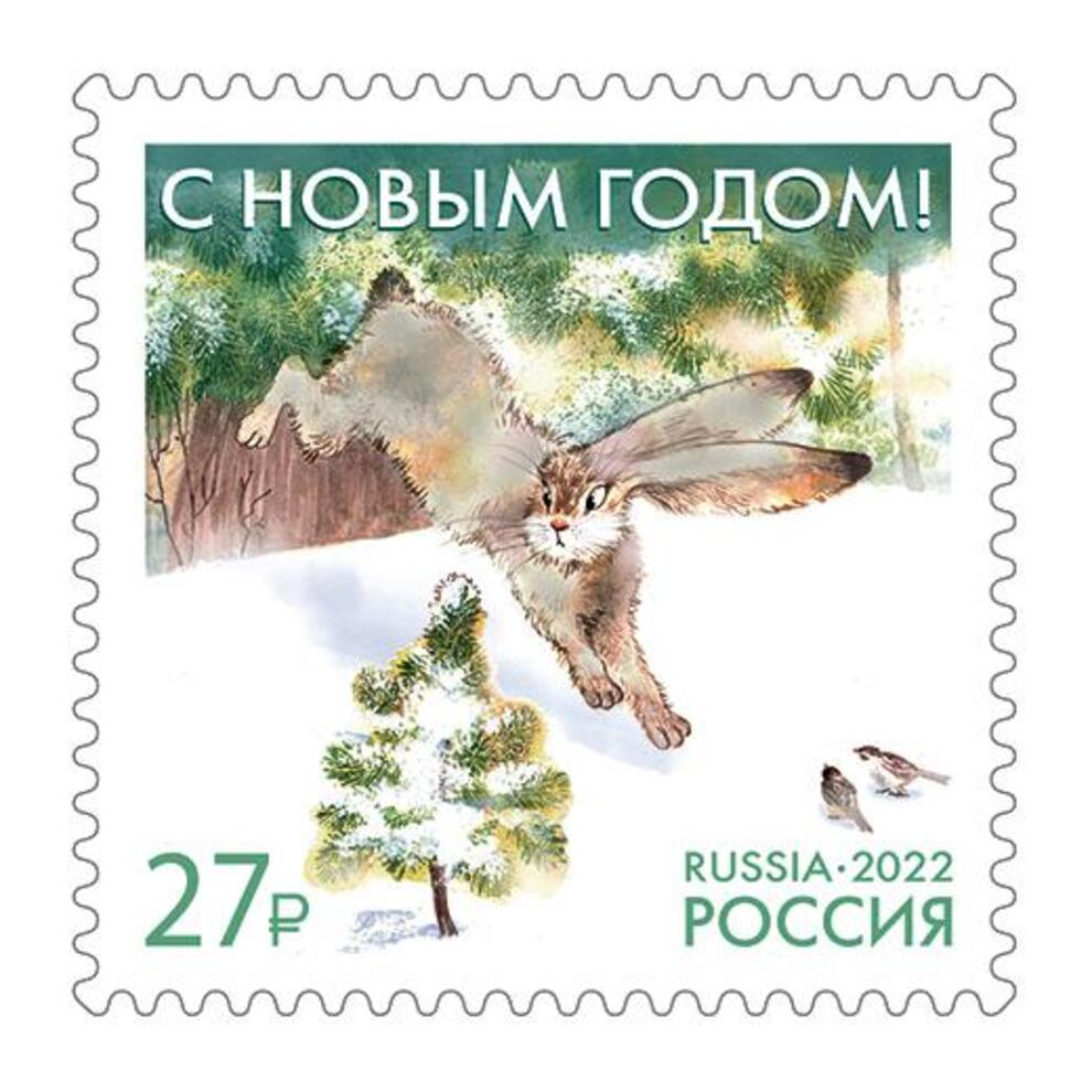 15 декабря в почтовое обращение вышли сразу две почтовые новогодние марки. На одной из них изображена ёлочная игрушка-избушка, на другой — символ наступающего года — заяц в зимнем лесу.