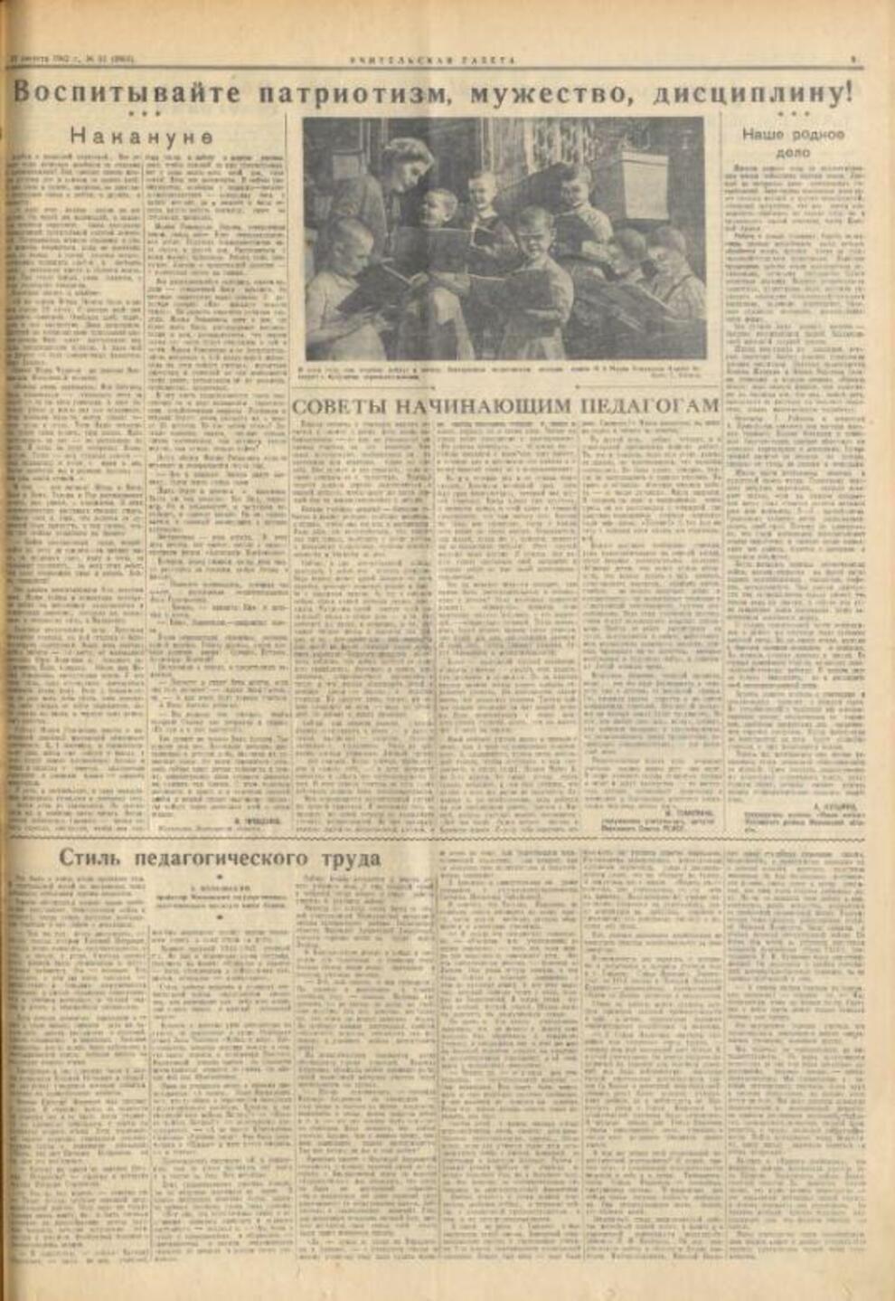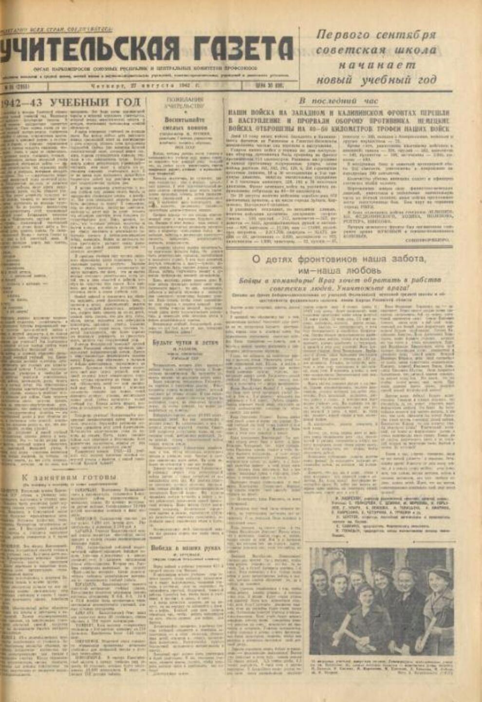 Вчерашние школьники, ушедшие на фронт, отправляли письма не только своим родным и возлюбленным, но и учителям. «Вы, наверное, меня давно уже позабыли: таких как я, вы воспитали сотни, а может быть, тысячи. Но я вас забыть не могу», – писал с фронта выпускник Средне-Ахтубинской школы В. Григорьев своему бывшему учителю Андрею Сергеевичу Балдину. «Но я вас забыть не могу»… Это признание шлет дважды орденоносец, получивший несколько ранений, переживший страшную весть о гибели его родителей от рук фашистских палачей…» Письма к учителям, подобные этому, печатались в «Учительской газете» нередко. В военные годы издание стало связным между фронтом и школой.