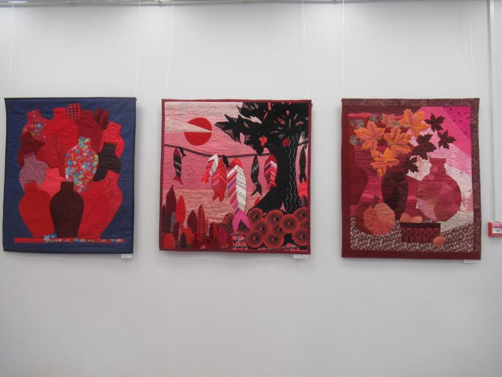 Новый лоскутной проект, давший название выставке, представила бессменный руководитель квилт-студии «Гатчина», профессиональный художник, член Союза дизайнеров России и Союза дизайнеров Санкт-Петербурга Наталья Косьянковская. Как она рассказала, впервые цикл работ «Нам нравится красный — он разный» был показан в рамках фестиваля лоскутного шитья «Лукоморье» в 2024 году. Но именно теперь, в стенах выставочного зала ЦИТ, он получил полное и гармоничное завершение.