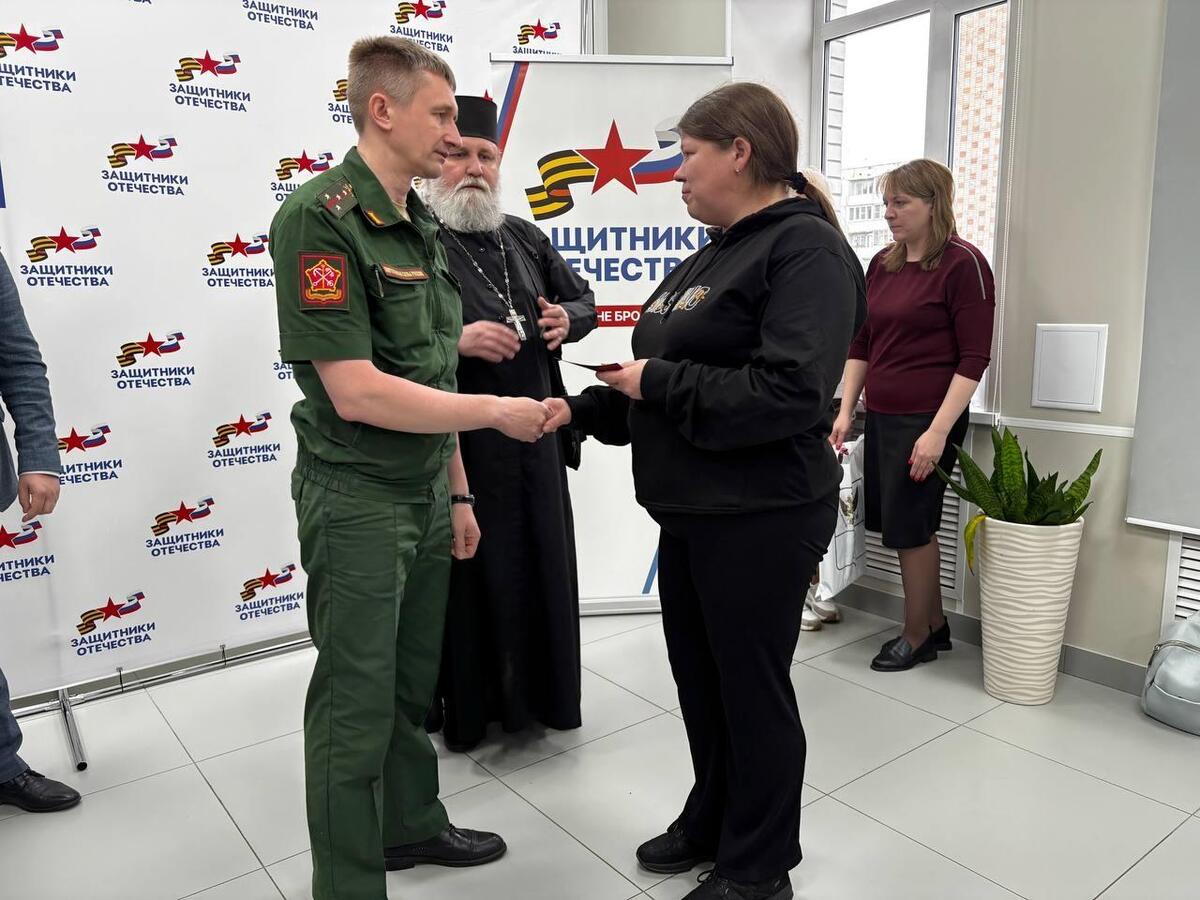 В завершение церемонии священник Вячеслав Красноруцкий рассказал о возможностях церкви в поддержке защитников и их близких и передал родным героев Поминальные грамоты о молитвенном поминовении в храме воинов, отдавших свою жизнь за Веру и Отечество. Заместитель руководителя филиала фонда Екатерина Смирнова напомнила о существующих ре-гиональных и федеральных мерах поддержки, а представитель администрации округа зафиксировала вопросы жителей для дальнейшей отработки.
