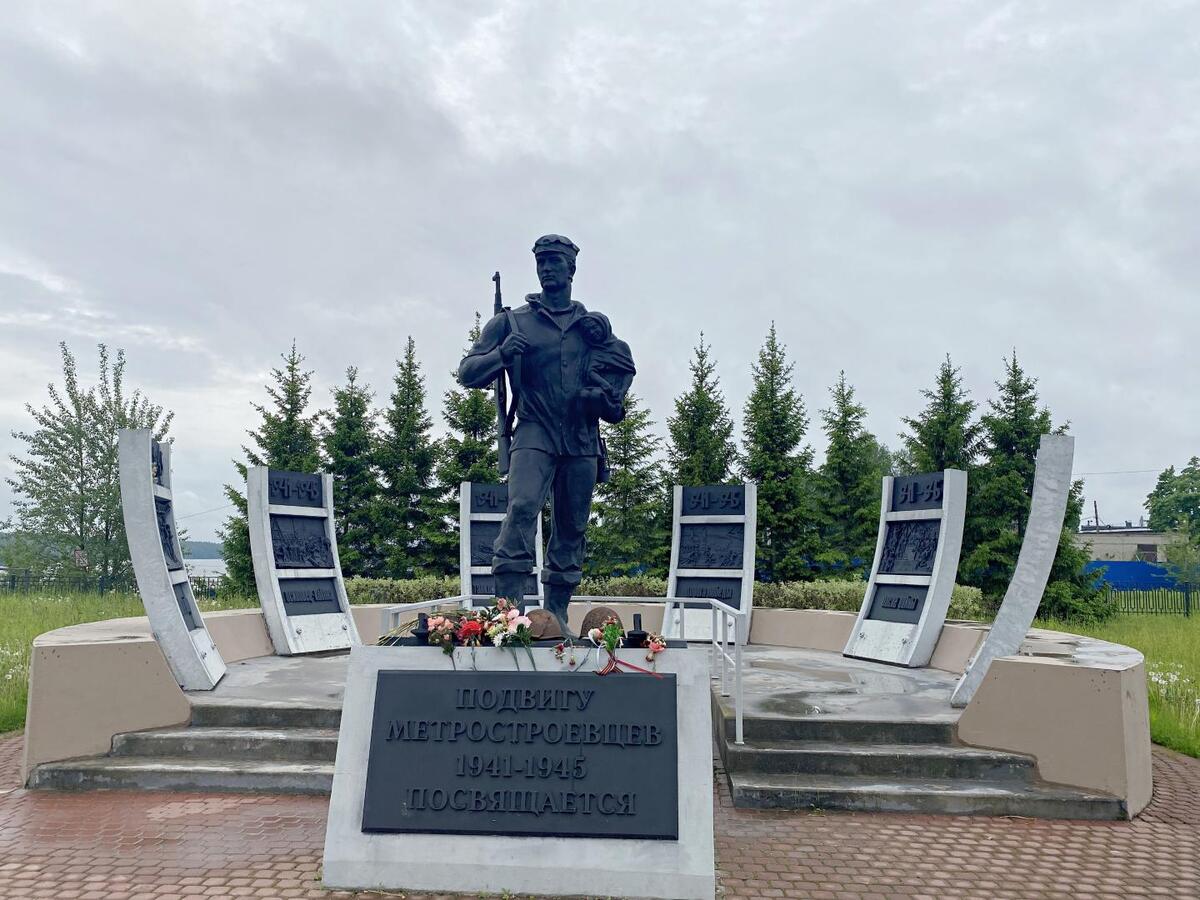 Следующим пунктом был мемориал «Метростроевцам». Нам повезло, что мы успели сходить туда до начала квеста, потому что в этот самый момент начался ливень. Стена холодного дождя загнала нас в машину, где мы стали думать над отгадкой. Еще раз изучив историю подвига метростроевцев, мемориал и изображения на нем, информацию на стенде, мы поняли, о чем идет речь, и смогли отправиться дальше – нас ждала Интернациональная аллея памяти и славы, где устанавливаются мемориальные памятные плиты субъектов Российской Федерации, бывших республик Советского Союза, представители которых в годы войны защищали Невский пятачок.