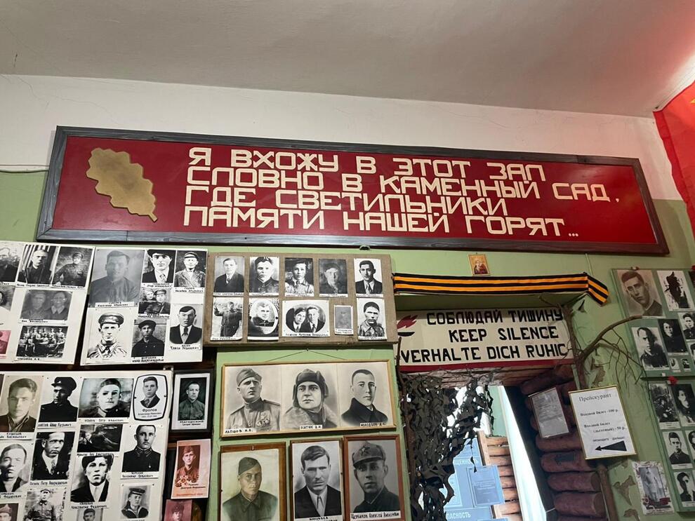 Следующий пункт – мемориал «Синявинские высоты». Территория огромная: в нее входят две аллеи с памятниками и мемориальными досками, братские воинские захоронения, памятные знаки, а также родник с чистой питьевой водой. К одному из центральных памятников мы возложили цветы и почтили павших минутой молчания. Мы узнали, что каждый год 7 мая здесь проходят захоронения останков солдат, найденных в этих местах. И нам как раз удалось увидеть совсем свежие места братских захоронений: недавно вырытая земля, заложенная еловыми ветками. Сердце замирает от страха, когда понимаешь, как много погибло здесь людей. И еще хуже от того, что большинство имен мы не узнаем никогда – их просто невозможно установить. Но память об этом подвиге всё равно будет жить дальше: в наших сердцах, в книгах, в фильмах, в мемориалах.