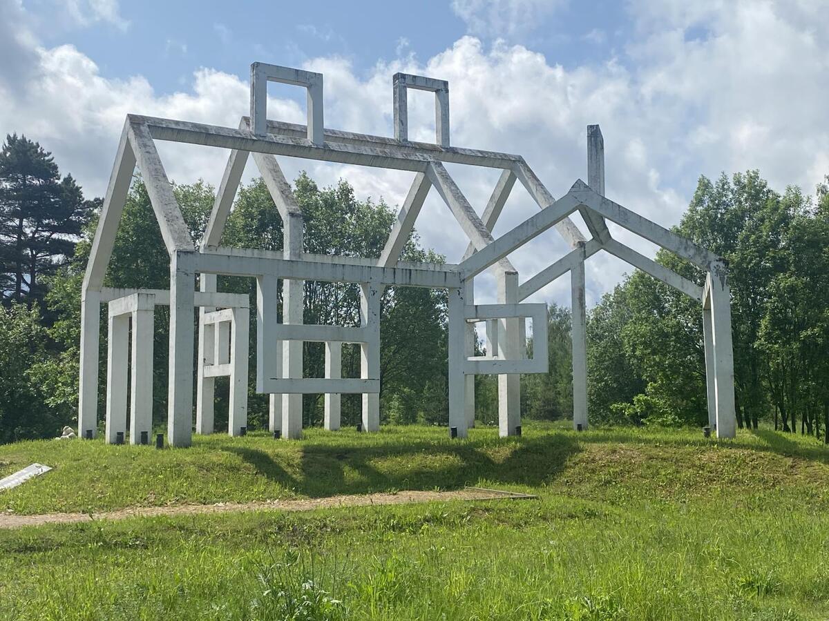 Пешком мы дошли до следующей точки – мемориала «Призрачная деревня». Он представляет из себя дома без стен, крыш, окон. Только силуэты – белые, будто это туман или видение. Этот памятник является символом уничтоженных немцами 38 селений и деревень на территории современного Кировского района. Место выбрано не случайно – до войны здесь находилась деревня Арбузовка, которая теперь стерта с лица Земли. Мы вновь возложили цветы. Было невыносимо больно стоять на месте, где когда-то кипела жизнь, где оборвалось множество судеб. И снова можно увидеть неровности рельефа, ямы и воронки, которые хранят в себе память о страшных военных днях.