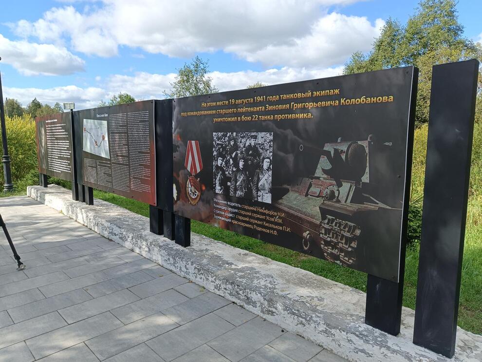 Сейчас в Новом Учхозе на постаменте установлен ИС-2, который не участвовал в бою в августе 1941 года. Вместо него появится подлинный боевой танк КВ-1, на котором экипаж Колобанова остановил продвижение фашистских войск и уничтожил 22 танка противника. Танк отреставрирован, но на нем – уникальная броня, на которой видны боевые вмятины. В ближайшее время он будет установлен на мемориале.
