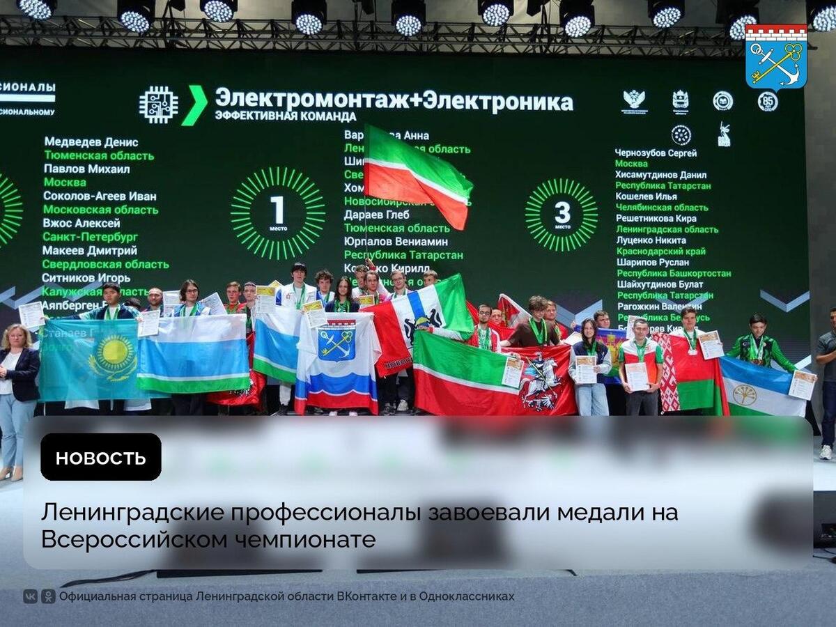 По итогам чемпионата Анна Варзанова из Сосновоборского политехнического колледжа заняла первое место в компетенции «Электромонтаж». В этой же дисциплине среди юниоров завоевала бронзу Кира Решетникова из детско-юношеского центра творчества Светогорска. Захарий Янцевич из Тосненского политехнического техникума стал обладателем третьего места в компетенции «Сварочные технологии».