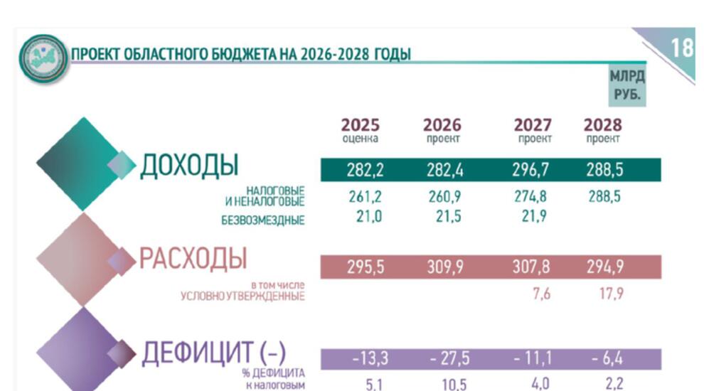 - Дефицит: 27,5 млрд руб. (10,5% к доходам).