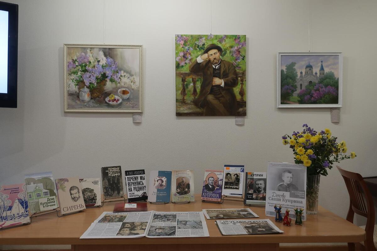 Можно сказать, что встреча, которую вела Алёна Тришина, проходила в совершенно купринской атмосфере – в окружении картин Гатчинского товарищества художников, посвященных писателю, его произведениям и героям. Как рассказала Алёна Александровна, детство Куприна – одна из наименее изученных страниц в его биографии.