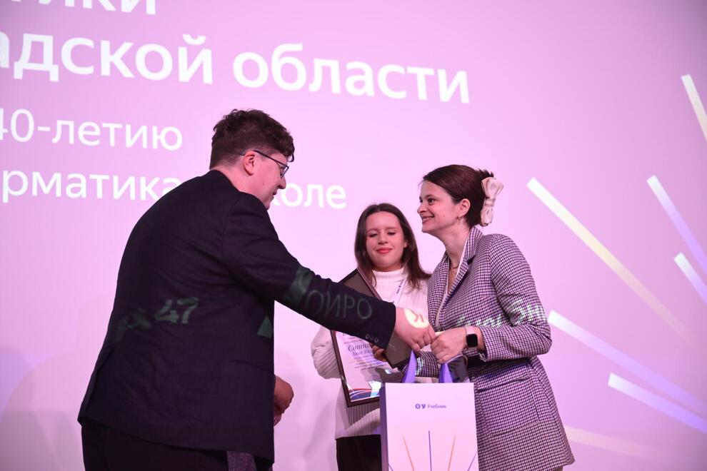 На съезде наградили педагогов за развитие регионального олимпиадного движения по информатике; за высокие результаты в реализации федеральных проектов цифровизации образования в системе среднего профессионального образования; за многолетнее и плодотворное руководство районным методическим объединением учителей информатики; за активное участие в программе профессионального развития Яндекс Учебника «Кадровый резерв».
