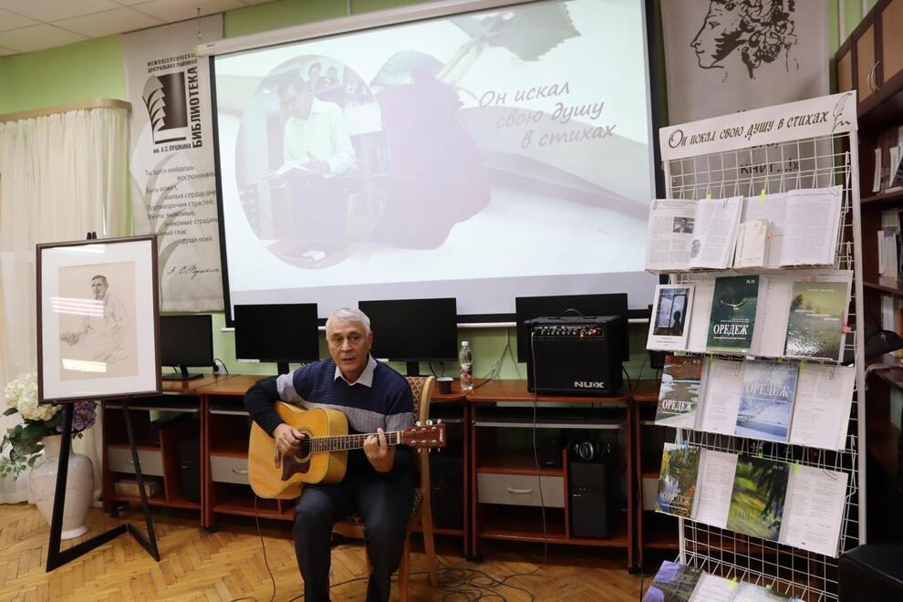 Роман Волков, музыкант и давний соавтор Евгения Докучаева, исполнил под гитару несколько песен на стихи поэта. Трогательное, щемящее сердце чувство. Всего два с небольшим года назад они выступали дуэтом перед школьниками и гостями библиотек. И вот, приходится петь одному…