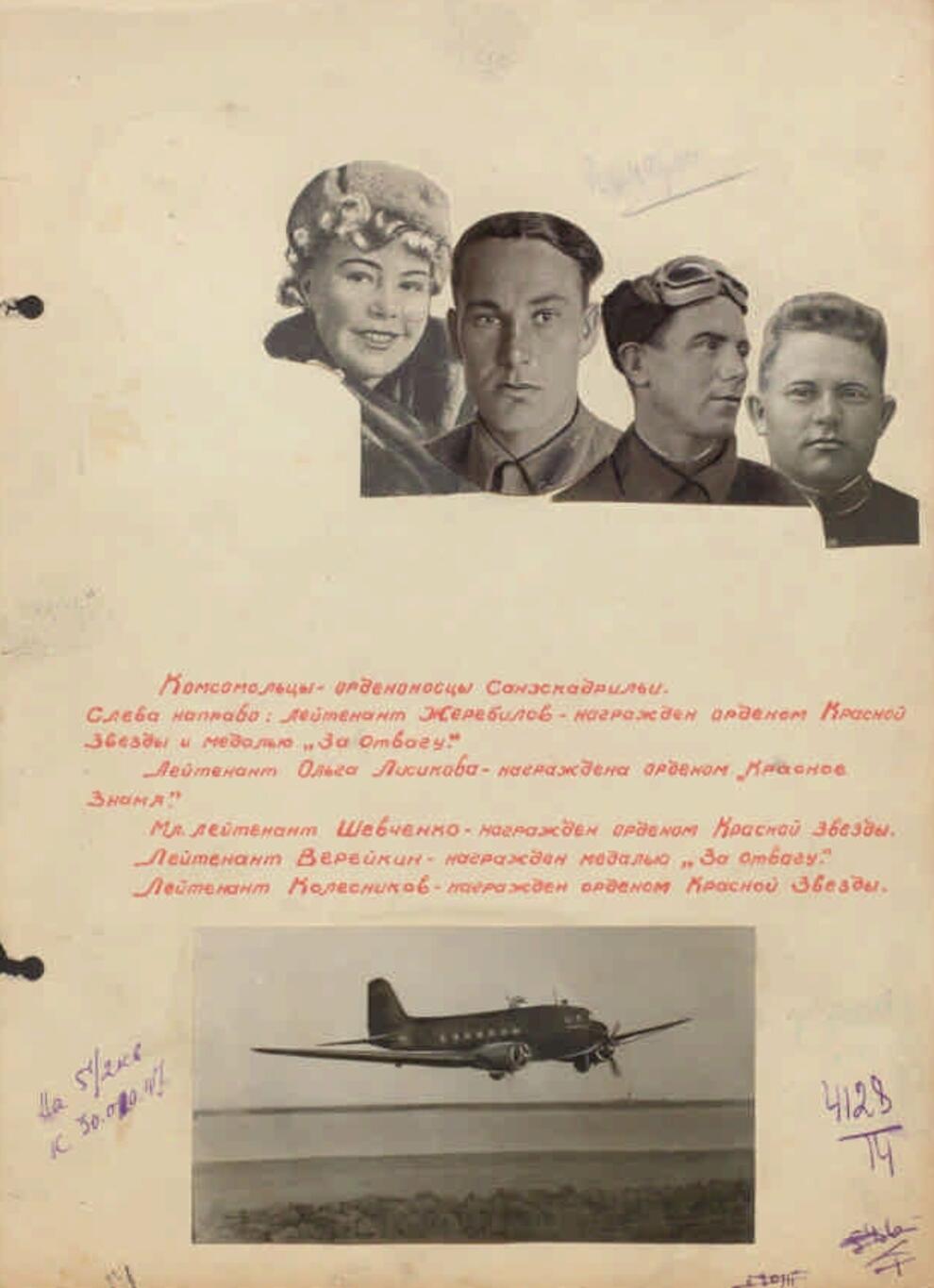 На портале Президентской библиотеки можно ознакомиться с рукописным альбомом «Отчет о боевой и политической работе комсомольцев 4-го Отдельного авиационного полка Гражданского Воздушного Флота» (Ленинград, 1947?). В альбоме собраны фотографии, сводки боевых действий, вырезки из газет.