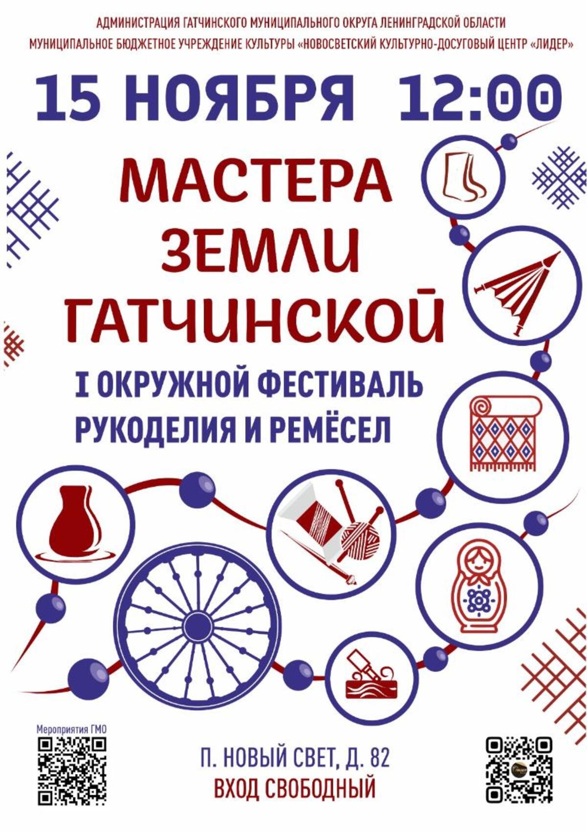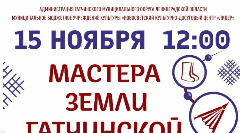 15 ноября в поселке Новый Свет в культурно-досуговом центре «Лидер» пройдет I окружной фестиваль рукоделия и ремесел «Мастера земли Гатчинской».