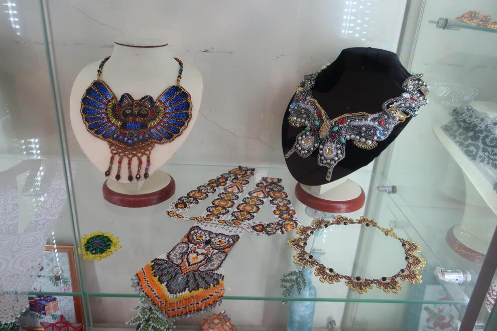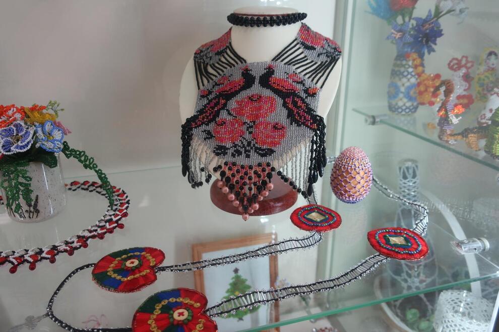 На выставке представлены разнообразные женские украшения, объемные работы с букетами цветов, живописные картины, иконы в технике бисера. Здесь можно увидеть, как ремесло бисероплетения становится подлинным искусством в руках талантливого человека.