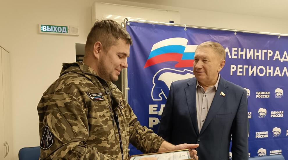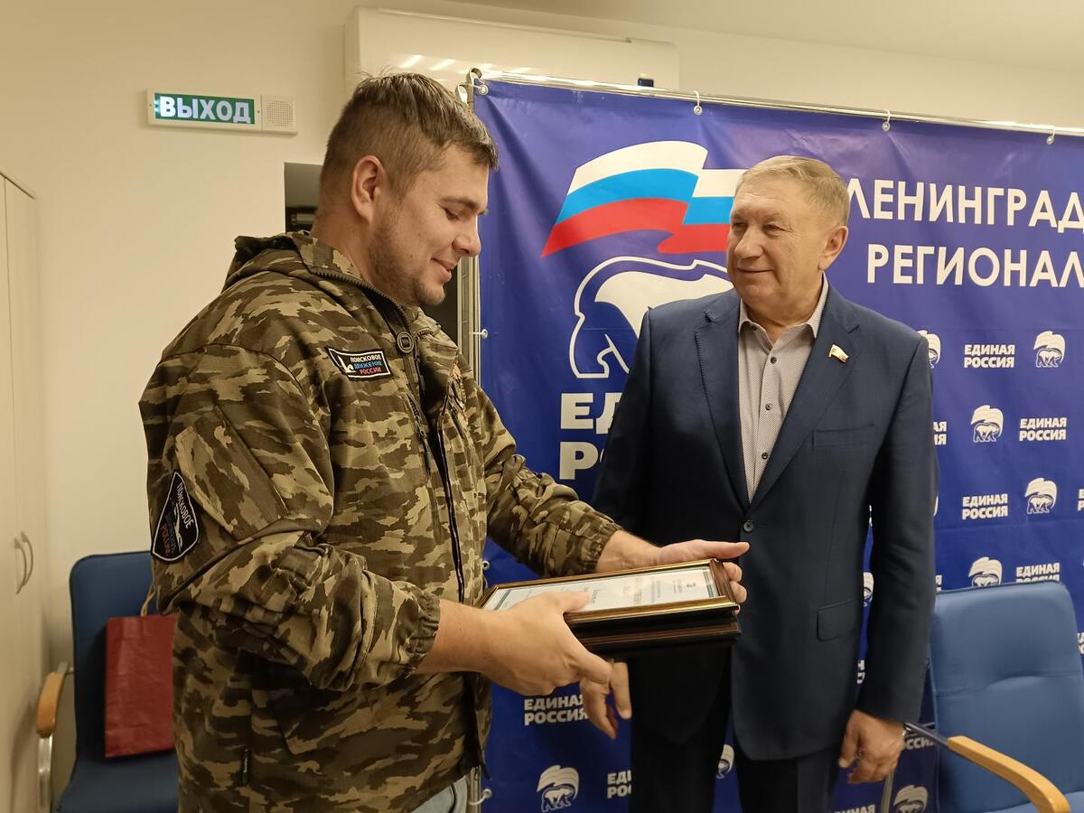 Депутат Государственной Думы РФ Сергей Яхнюк 6 ноября провел прием граждан в Гатчине в Общественной приемной партии «Единая Россия» и вручил награды самым активным поисковикам отряда «Искра».