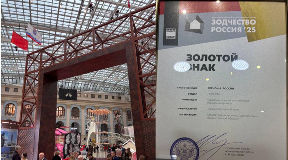Павильон Ленинградской области получил высшую награду на XXXIII Международном архитектурном фестивале «Зодчество» в Москве. Экспозиция региона заняла первое место среди 18 региональных выставочных проектов.