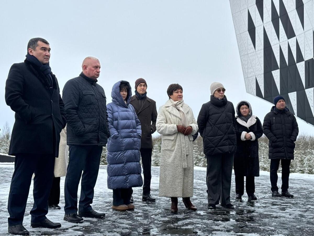 Программа началась с посещения величественного Мемориала в память о мирных жителях СССР – жертвах нацистского геноцида в годы Великой Отечественной войны 1941–1945 гг. Делегация почтила память погибших, склонив головы перед символом общей трагедии и нерушимой стойкости наших народов. Это место глубокой скорби, которое напоминает о важности сохранения мира и исторической правды.