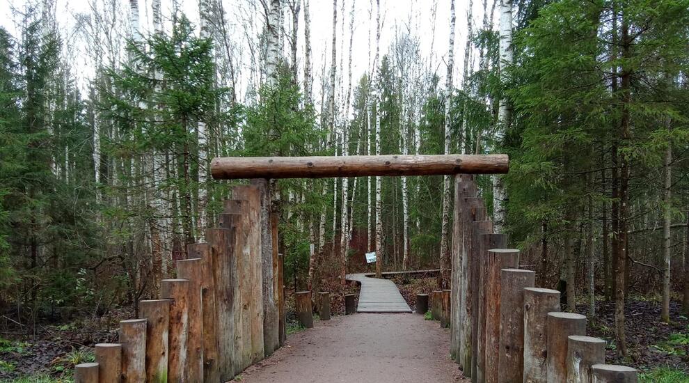 Если вы приедете в Зверинец уже сейчас, выйти на экотропу можно так: паркуемся на Сокколовском шоссе, от парковки идем направо в сторону парка. Проходим мимо инсталляции «Мельница», далее идем вдоль ограды Дворцового парка. Путь по Пильненской дороге займет примерно 10 минут. Не доходя 100 метров до Пильного моста, слева будут деревянные ворота на тропу.