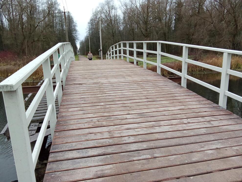500 метров будет петлять по лесополосе. В конце пути настила нет. Среди зарослей болотной травы протоптана дорожка. Пройдете по ней около 200 метров и окажетесь на берегу реки Теплой. У понтонного моста переходите через речку, и через 50 метров с левой стороны вдоль берега будет продолжение маршрута.
