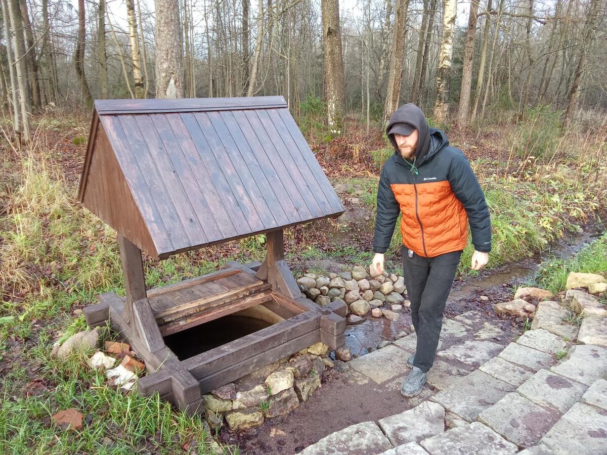 На пересечении дорог Цагове и Можжевеловой, ближе к Сокколовскому шоссе, находится красивый родник. Как пояснил Семен Павлович, родник старый. Его нашли на исторических чертежах. Неподалеку на поляне стоял егерский домик, казармы и большой загон для скота.