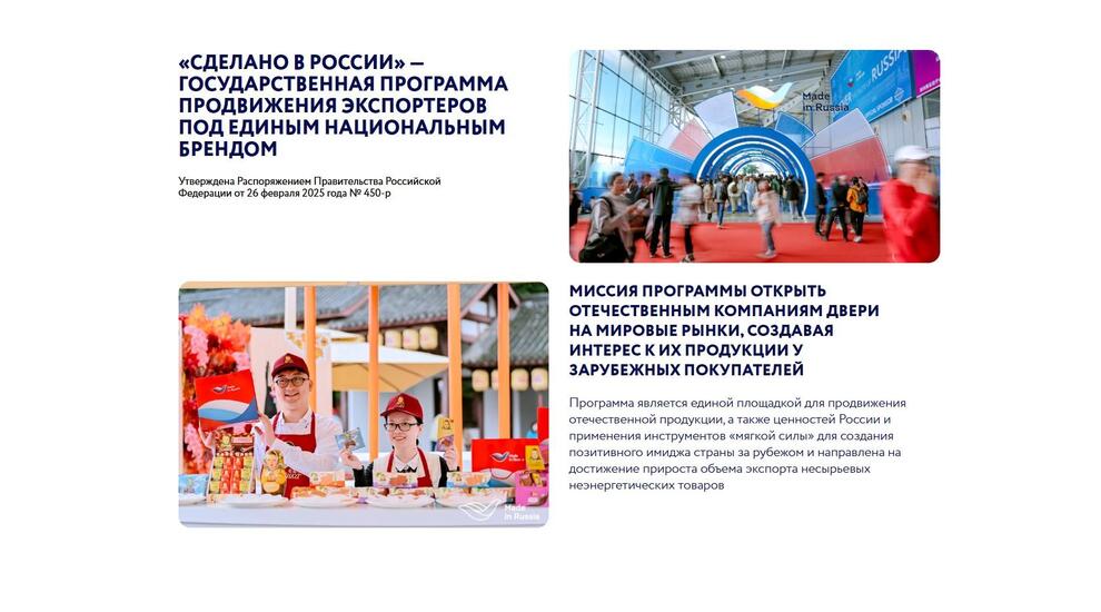 Отметим, мероприятие пройдет в рамках программы продвижения российской продукции под национальным брендом «Сделано в России». Координатором программы выступает Минпромторг России в рамках нацпроекта «Международная кооперация и экспорт», оператор — Российский экспортный центр. С 2017 года программа помогает компаниям выходить на новые рынки и укреплять доверие потребителей. Роль инициатив РЭЦ в расширении ассортимента российского экспорта в Китай отметили на высшем уровне в ходе встречи Владимира Путина и Си Цзиньпина в 2025 году.