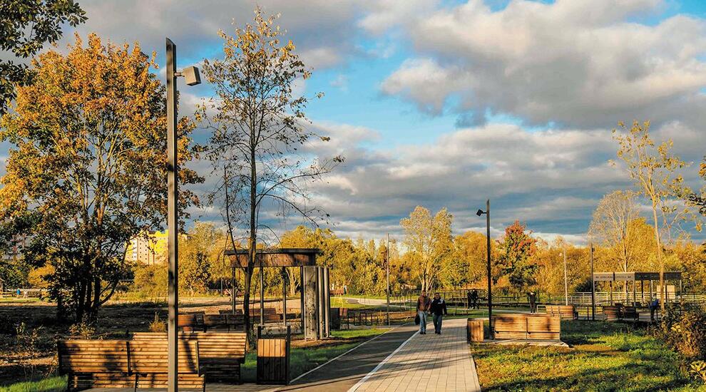 Один из примеров такого подхода — общественное пространство «Дорога в школу» в Светогорске (Выборгский район). Главная пешеходная дорожка, ведущая из дворов на улице Красноармейской в школу, преобразилась. На асфальте появились «классики» и формулы. Для тех, кто не спеша возвращается с занятий, обустроили игровые зоны. Размяться ребятам помогают лазалки и бату ты, а замедлиться — островки для отдыха и качели. Вдоль дорожек «выросли» современные фонари. Теперь родителям удобно подъехать сюда на машине, ведь рядом оборудовали парковку.