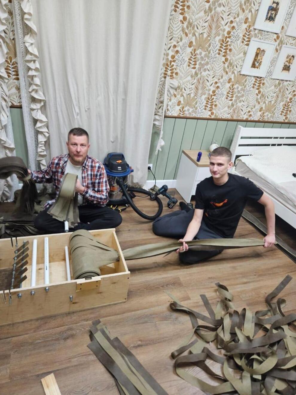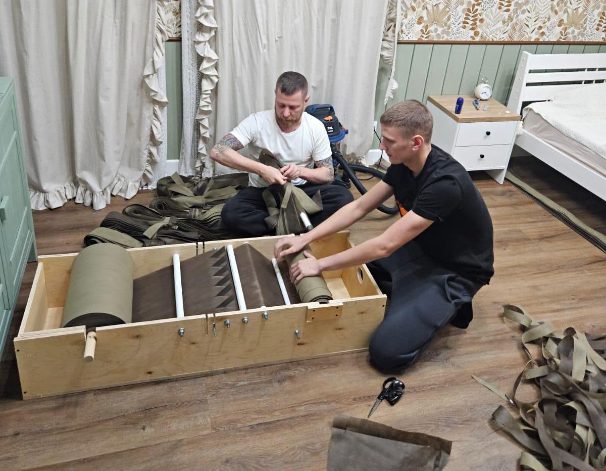 Фанера, канцелярские ножи, шпильки, пластиковые водопроводные трубки – из этого нехитрого материала отец и сын – Юрий и Геннадий Сушко – сконструировали специальный станок для резки лент на маскировочные сети. Правда, сами они считают свое изобретение примитивным и признавать себя мастерами отказываются: ну усовершенствовали процесс нарезки и безвозмездно тиражируют это ноу-хау, собирая станки по заказу добровольческих объединений, готовы делиться опытом… Обычное дело для настоящих мужчин!