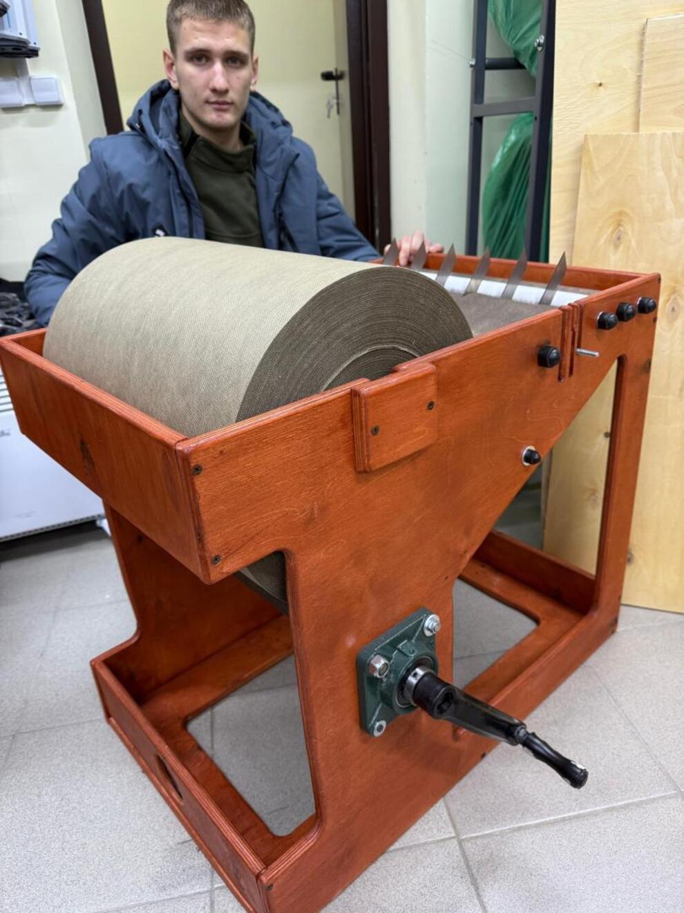 Мастера испробовали станок в действии – перемотали весь рулон, нарезав на полоски. Работа, на которую обычно уходит неделя, заняла 15 минут. Отвезли станок волонтерам из объединения «ZOV Федотовой» – показали женщинам, как на нем работать – дело двинулось!