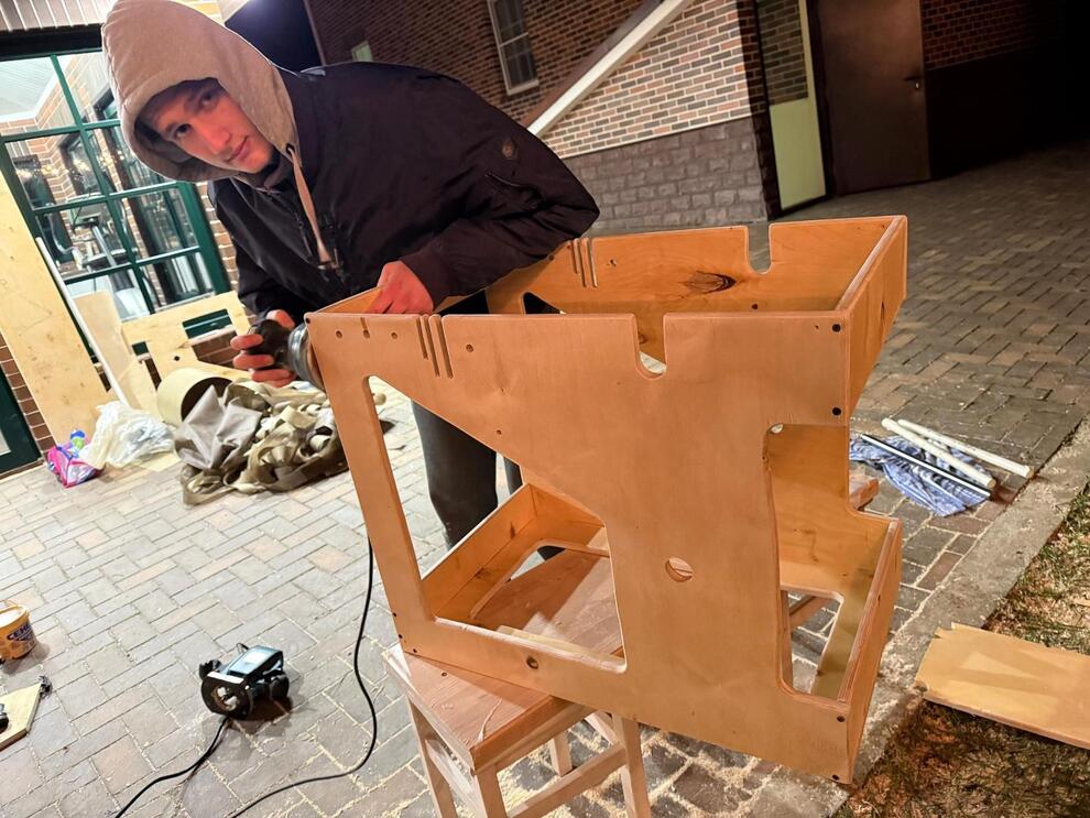 Станки оказались чрезвычайно востребованы, и мастера стали принимать заказы – безвозмездно. Набрали фанеры еще на шесть станков и запустили производство. Сборка идет с некоторыми перерывами, потому что, помимо волонтерской деятельности, у мастеров есть еще и ответственная работа по специальности. Юрий Сушко – главный инженер в компании, которая занимается ремонтом серьезной техники, так что конструирование станка для резки лент, с его точки зрения, абсолютный примитив. Причем, как объяснил Юрий Павлович, наполовину идея и инициатива принадлежит 19-летнему Геннадию, который недавно выучился на автомеханика и хорошо разбирается в технически вопросах.