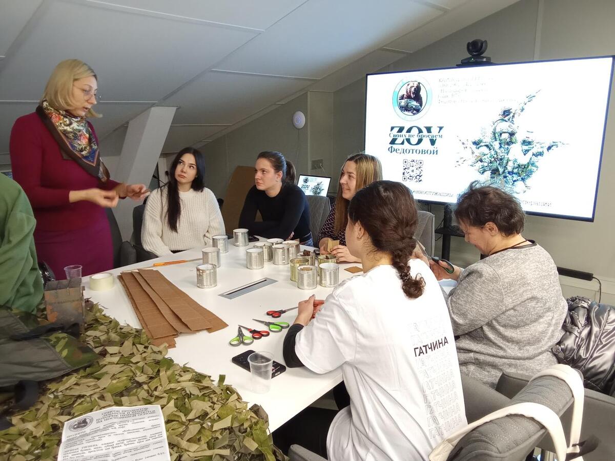 В ходе мероприятия волонтеры проекта «ZOV Федотовой» провели мастер-класс по изготовлению окопных свечей и плетению маскировочных сетей. Мальчишки и девчонки, ученики Пригородной школы, смогли примерить костюм лешего и антидроновые плащи, которые волонтеры изготавливают и передают на фронт.