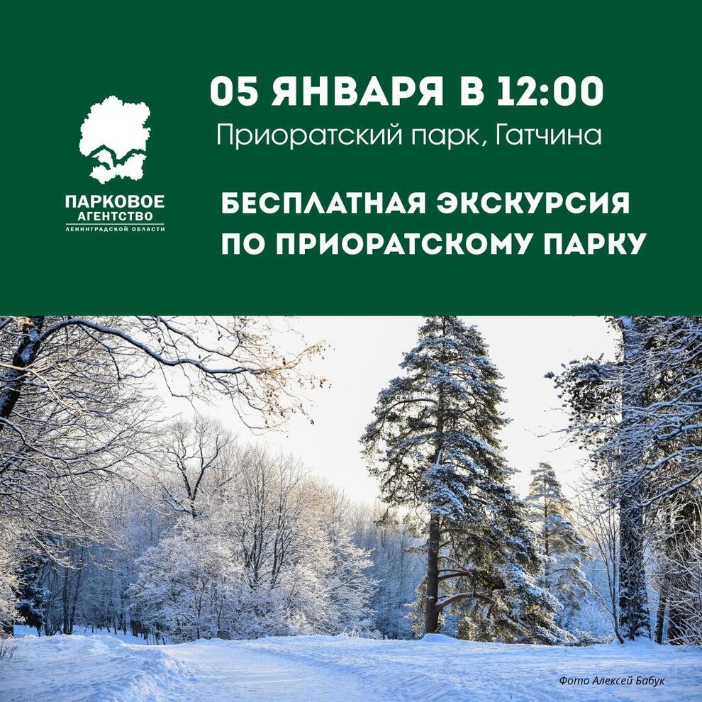 5 января в 12:00 состоится бесплатная экскурсия по Приоратскому парку Гатчины, во время которой можно будет узнать множество интересных фактов об истории создания одного из живописнейших ландшафтных парков, о его послевоенной судьбе, о легендах и мифах, которые делают Приорат еще более притягательным и интересным. Сбор группы у книжного шкафа вблизи Приоратского дворца (вход в парк со стороны улицы Леонова).