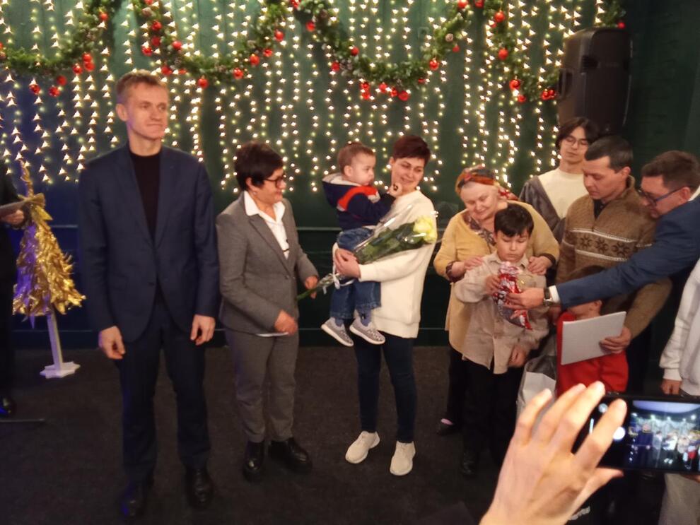 Первыми подарки принимали многодетные семьи. Ключи от квартиры в поселке Высокоключевой и новогодние подарки вручили Марии Лукашиной, воспитывающей пятерых детей. Лейле Ланг, маме четырех детей, предоставлена трехкомнатная квартира в городе Коммунаре. Жительнице поселка Высокоключевой Вере Ивановой, воспитывающей пятерых детей, вручены ключи от четырехкомнатной квартиры в деревне Малое Верево.