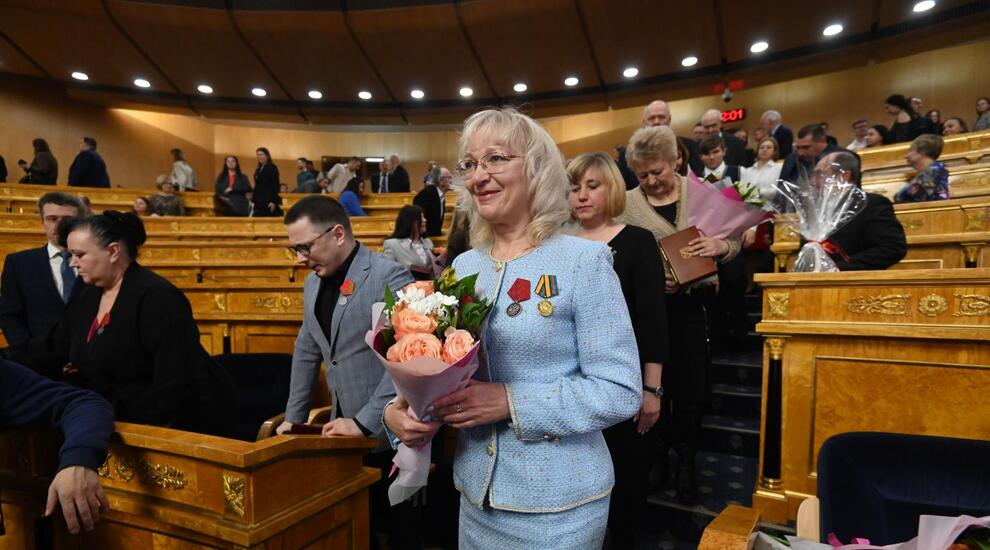 Среди награжденных — матери-героини: Ирина Махова воспитывает одиннадцать детей и двенадцать — Наталия Небогатова;