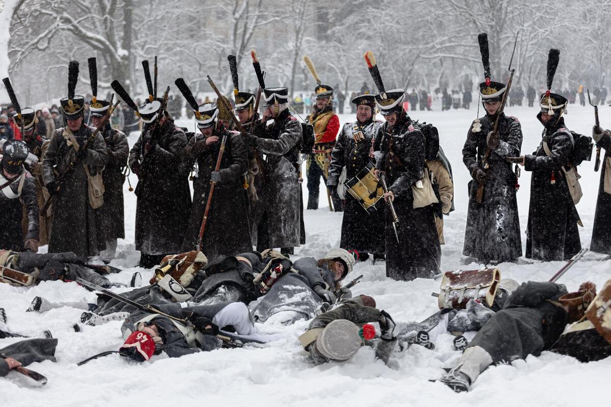 По окончании реконструкции гости смогли лично пообщаться с ее участниками, сделать памятные фото и даже выстрелить из исторических ружей и согреться ароматным чаем из самовара с баранками. Реконструкторы праздновали победу шампанским, сбивая горлышко саблей. Французские «коллеги» читали стихи о судьбе отступающего французского солдата, замерзающего в морозную русскую зиму, и рассказывали интересующимся о снаряжении и особенностях воинской формы.