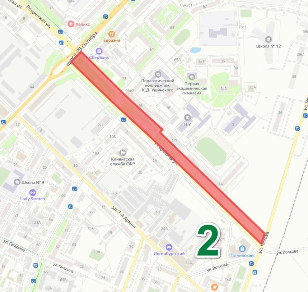 - общественное пространство в микрорайоне Мариенбург (территория вдоль ул. Рысева на участке от ул. 120-й Гатчинской Дивизии до ул. Рошаля),