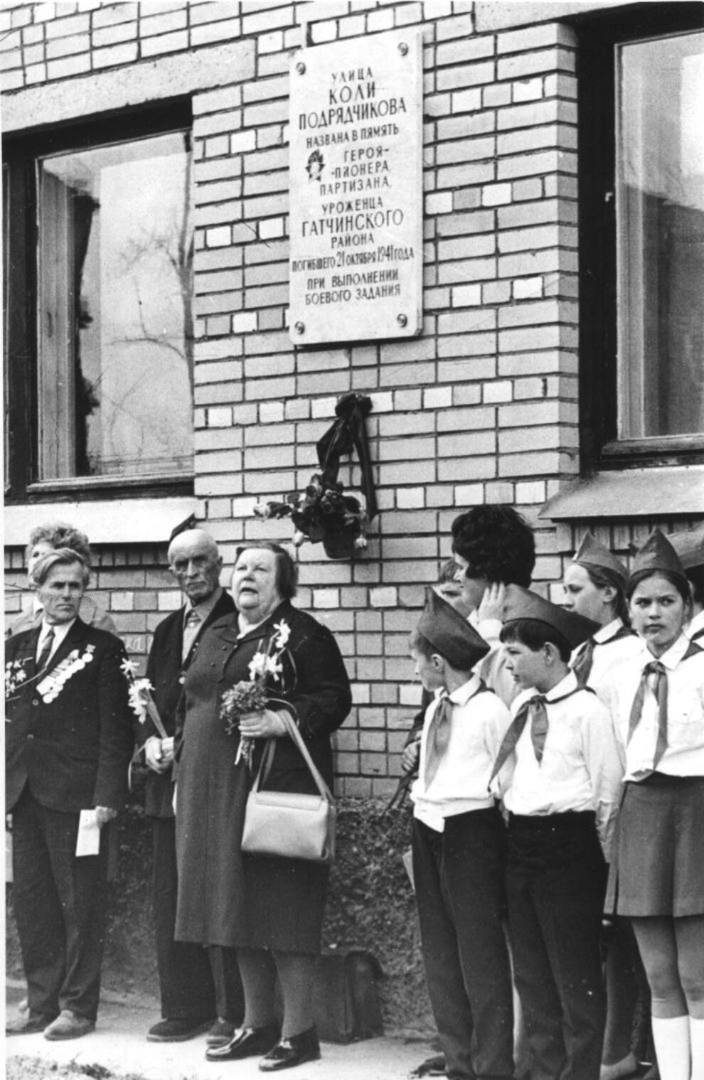 После войны Леонид Иванович Подрядчиков был очень немногословен и мало рассказывал об этой трагедии, хотя иногда он принимал приглашения выступить перед школьниками. До выхода на заслуженный отдых он работал бригадиром в местном колхозе, за добросовестный труд был награжден орденом Ленина. Мать Коли, Мария Павловна, тяжело переживала смерть сына. Поэтому основная информация о его боевом пути шла от партизан Гатчинского отряда, в составе которого находилось 35 человек.