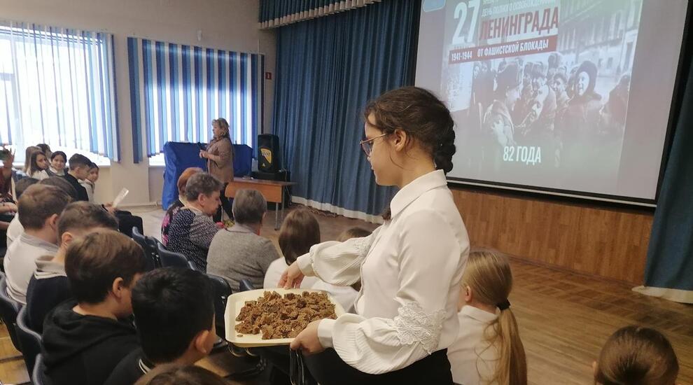Это был не обычный урок истории, а эмоциональное погружение в одну из самых трагических страниц Великой Отечественной войны, рассказ о героизме жителей и защитников Ленинграда. Блокада города длилась 872 дня, и каждый день был настоящим испытанием для жителей. По разным данным в эти дни погибло от 692 тысяч до полутора миллионов человек, и 97% из них — от голода. Единственной надеждой на завтрашний день был паек. Буханка хлеба постепенно превратилась в «125 граммов жизни» - такой была суточная норма хлеба для ребенка, служащего, иждивенца в самую страшную зиму 1941–1942 годов.