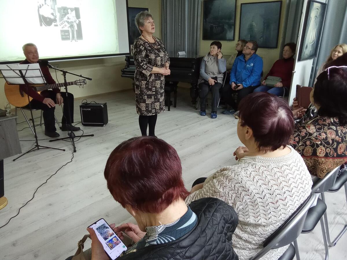 На творческом вечере выступил известный гатчинский бард Андрей Потоцкий. В его исполнении прозвучали и песни Владимира Высоцкого, и его собственные произведения.