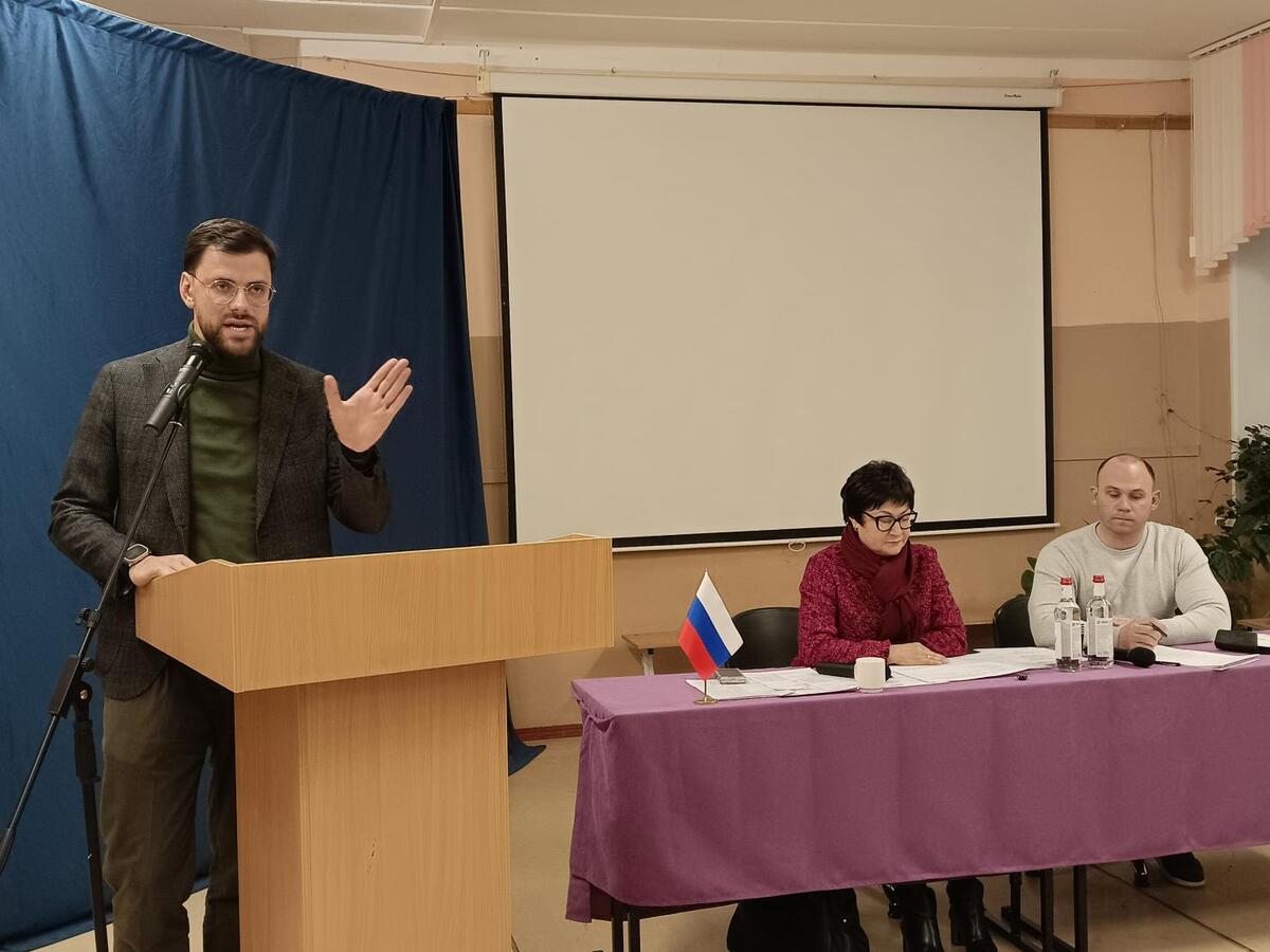 Исполняющий обязанности главного врача Гатчинской КМБ Ростислав Павлов рассказал на встрече о доступной медицинской помощи в поселке и перспективах Кобраловской амбулатории.