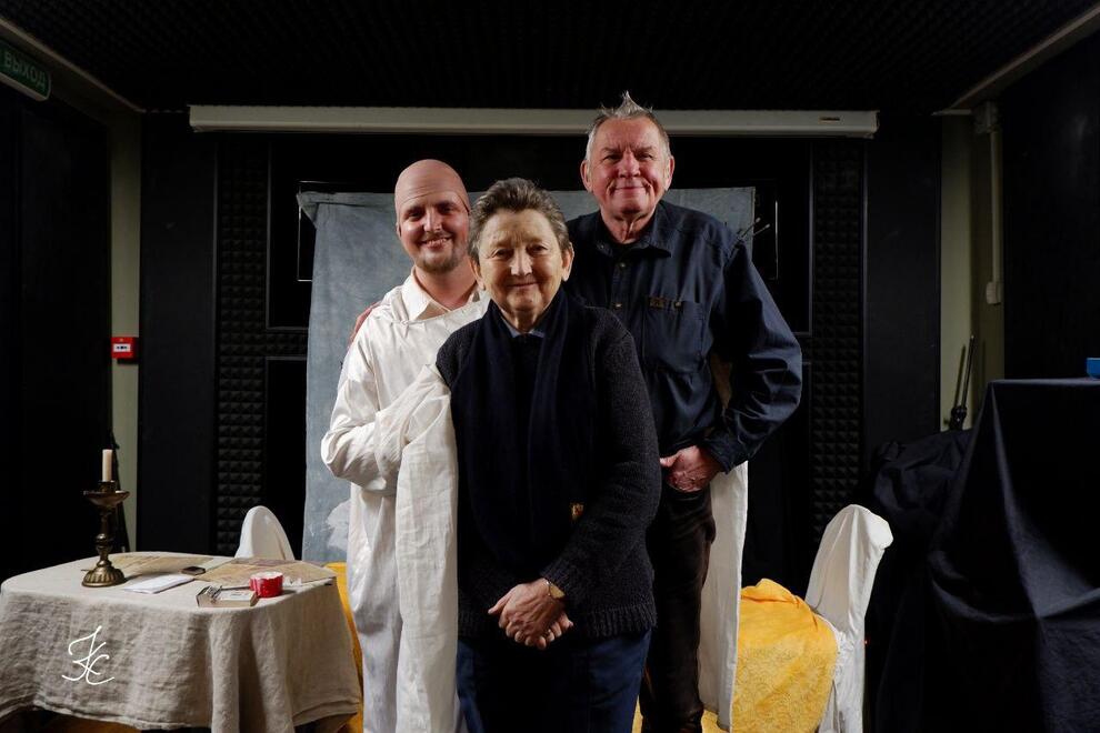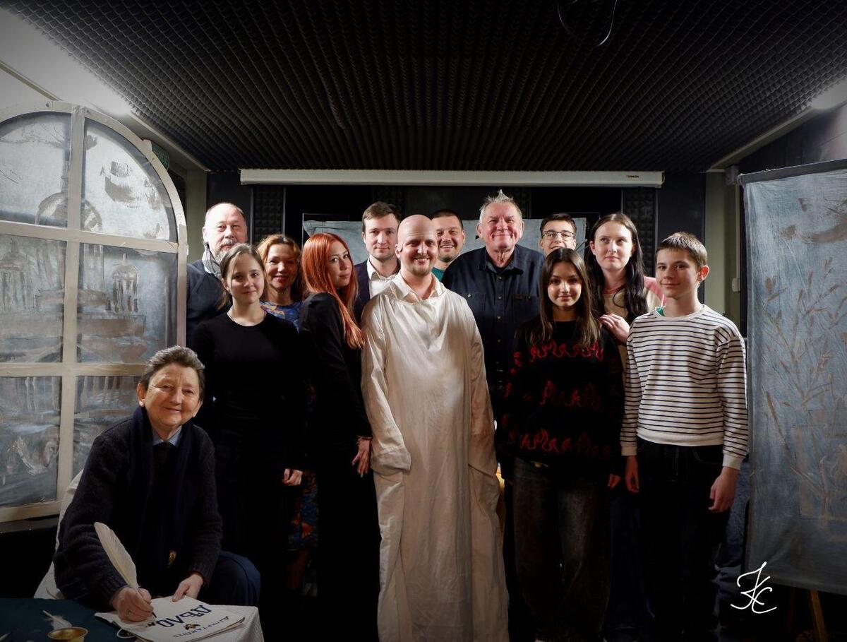Верные театру зрители приехали на спектакль «Исповедь» из Гатчины. А потом была общая фотография на добрую память о спектакле, конечно же, с хозяином Арт–центра, «Гаркунделем» - Олегом Гаркушей.