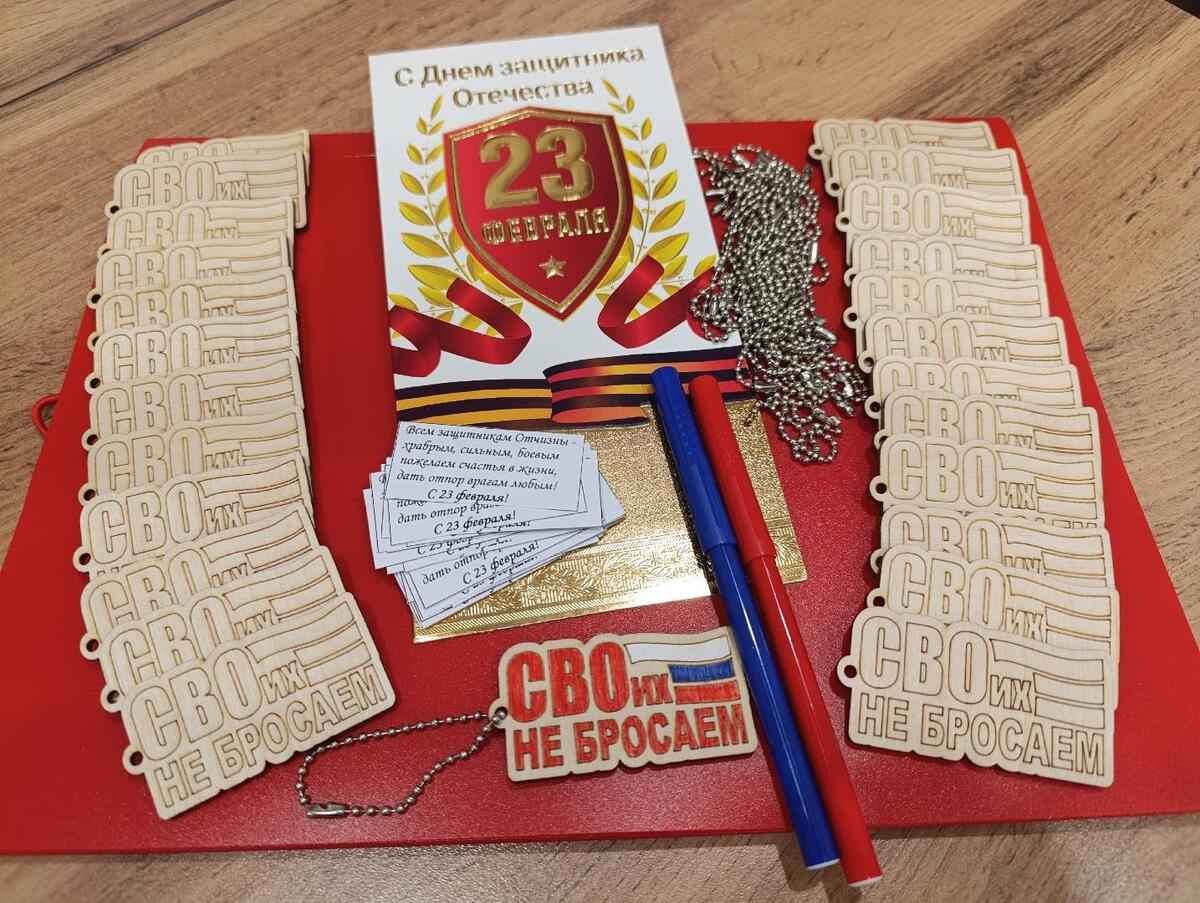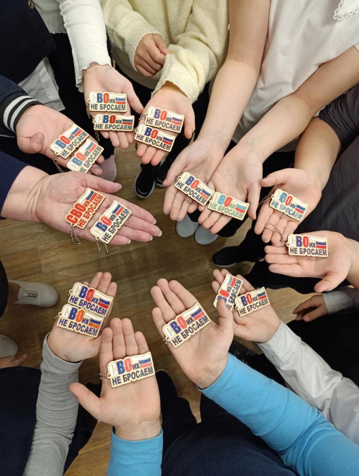 Ребята с огромным старанием расписывали деревянные заготовки для брелоков. На каждой из них - важные, ставшие родными слова: «Своих не бросаем». А на обратной стороне школьники оставили тёплые поздравления и добрые пожелания.