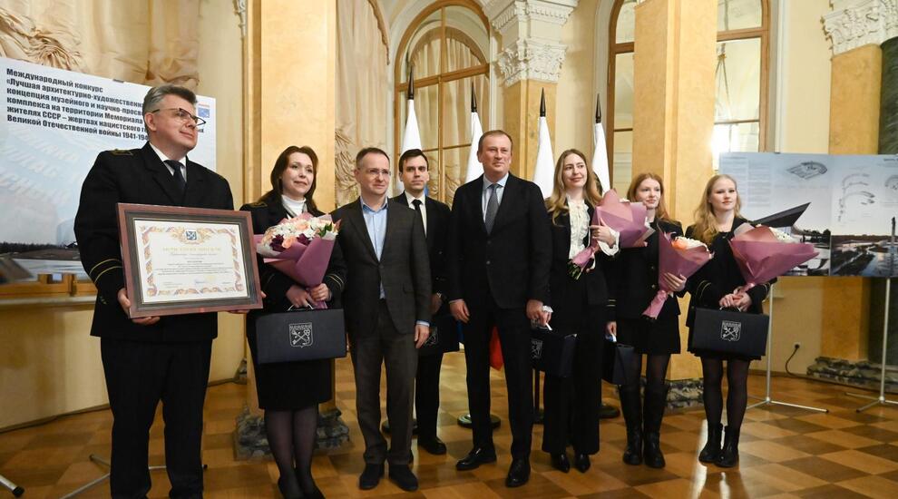 Губернатор Ленинградской области Александр Дрозденко и помощник Президента Российской Федерации, председатель Российского военно-исторического общества Владимир Мединский наградили победителей международного конкурса на разработку архитектурно-художественной концепции музейного и научно-просветительского комплекса на территории Мемориала «В память о мирных жителях СССР — жертвах нацистского геноцида в годы Великой Отечественной войны 1941–1945 гг.» в деревне Зайцево Гатчинского муниципального округа.