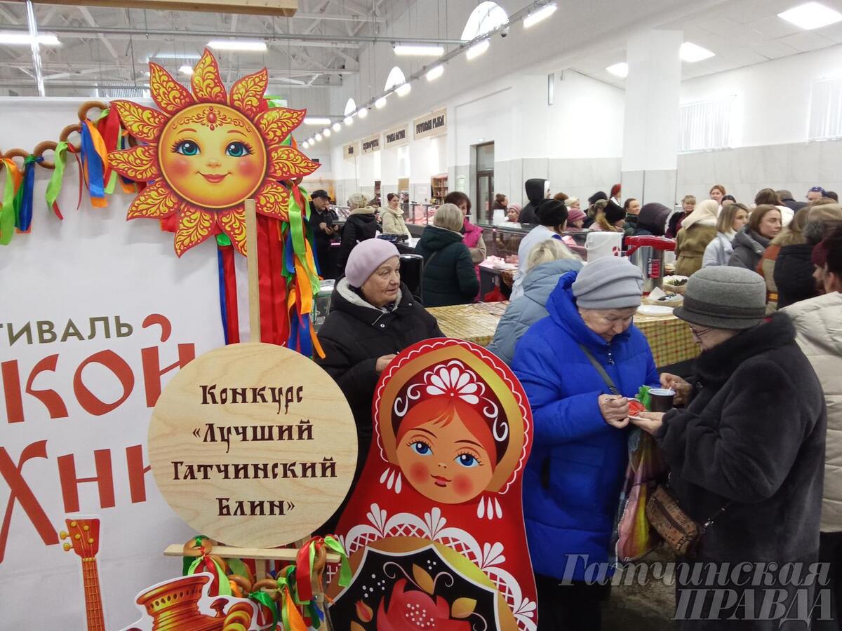 Масленичными блинами лакомились, лучший гатчинский блин выбирали жюри и посетители центрального павильона продовольственного рынка – теперь ТК «На Соборной».