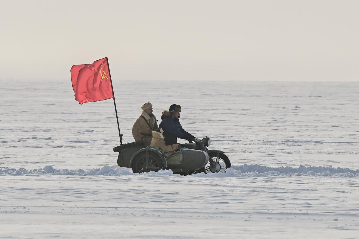 Первая ледовая реконструкция движения по Дороге жизни на машинах, поднятых поисковиками со дна озера, прошла в Ленинградской области. Губернатор Ленинградской области Александр Дрозденко на мотоцикле возглавил колонну исторической техники.