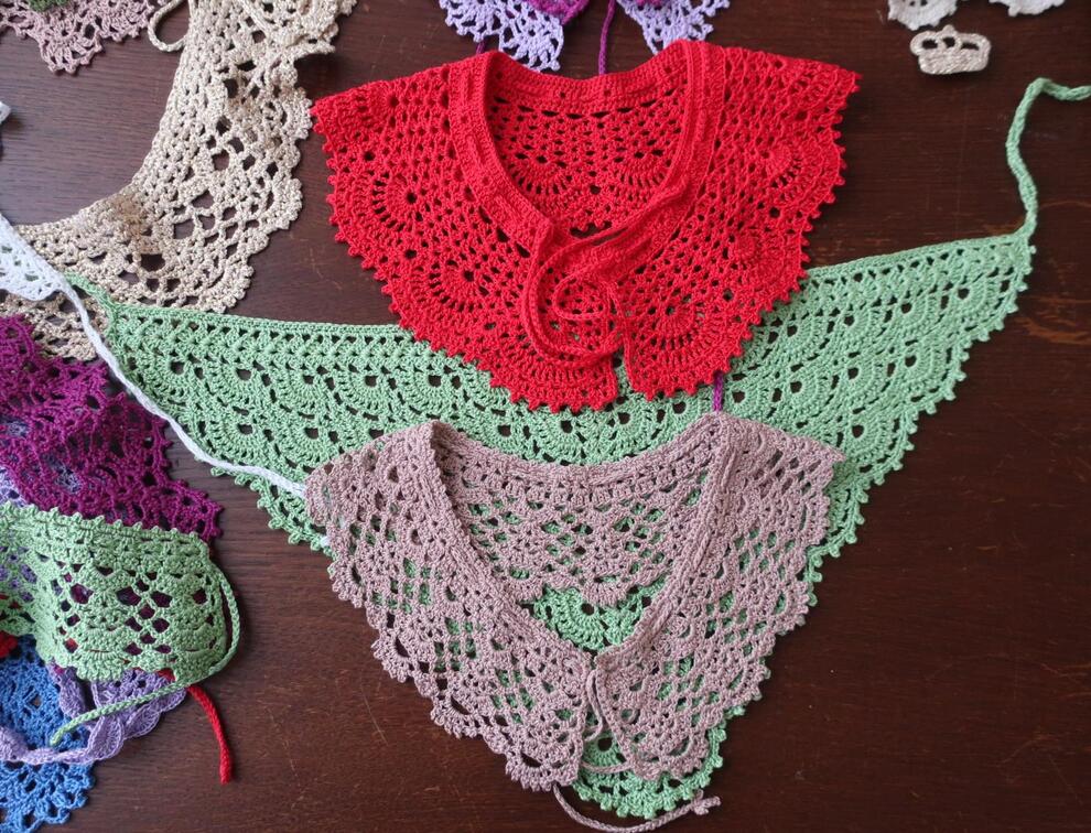 Оксана Николаевна вяжет шали, палантины и яркие пледы, интерьерные кружевные покрывала, наволочки, скатерти, салфетки и занавески, которые привносят в дом уют и тепло. Но особенное место в ее рукодельном творчестве с недавнего времени стали занимать кружевные ажурные воротнички.