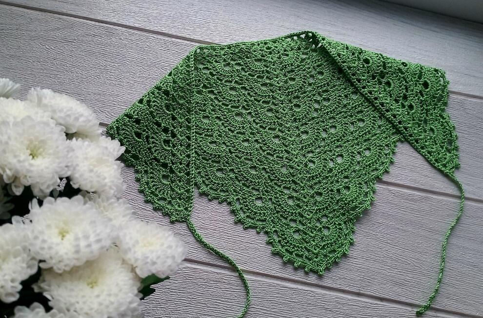 Вяжет Оксана Николаевна и модные ажурные косыночки, которые можно носить на голове, как шейный платочек или пояс — все эти варианты выглядят очень интересно.