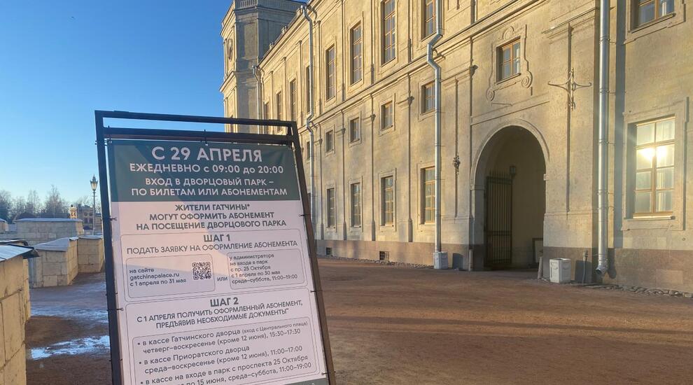 С 1 апреля Гатчинский музей-заповедник начинает оформлять абонементы для жителей Гатчины на посещение Дворцового парка в этом сезоне. С 29 апреля вход в парк для приезжих становится платным. Жители Гатчины и микрорайона «Речной» могут оформить сезонный абонемент на свободное посещение парка на весь сезон. Стоимость – 300 рублей, при оформлении на сайте – 200 рублей.