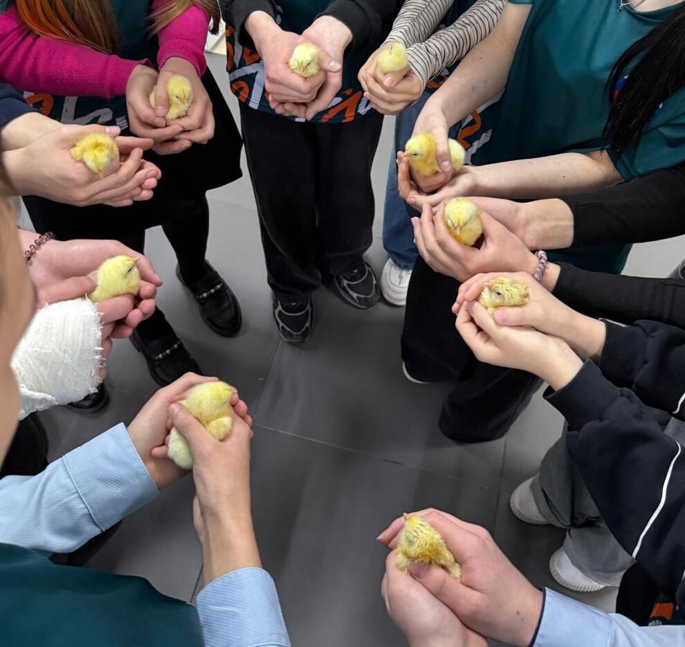 Первые цыплята пробили скорлупу в праздничный день 8 марта, порадовав организаторов проекта - учеников 10 агротехнологического класса, классного руководителя Юлию Степанову и руководителя агротехклассов Александру Денисову.
