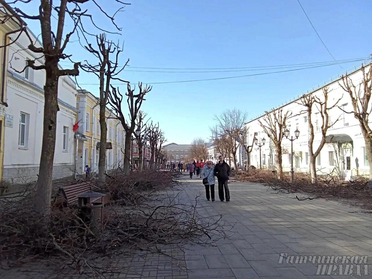 На главной пешеходной улице Гатчины – весеннее преображение: за две субботы 68 лип на участке от проспекта до ул. Горького были подстрижены по последней моде. Процедуру провели профессиональные арбористы – специалисты по работе с деревьями. Для обрезки лип на Соборной пригласили организацию, которой доверяют работу на объектах культурного наследия – на исторических деревьях, в музеях-заповедниках, дворцовых парках.